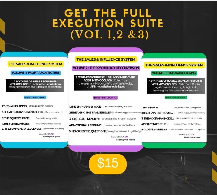 Commercial success is not a matter of luck; it is a matter of structure and psychology. Brunson provides the architecture to attract and convert at scale, while Voss provides the subconscious levers to close any deal. It is a total immersion into the engineering of consent and the mastery of sales flows.