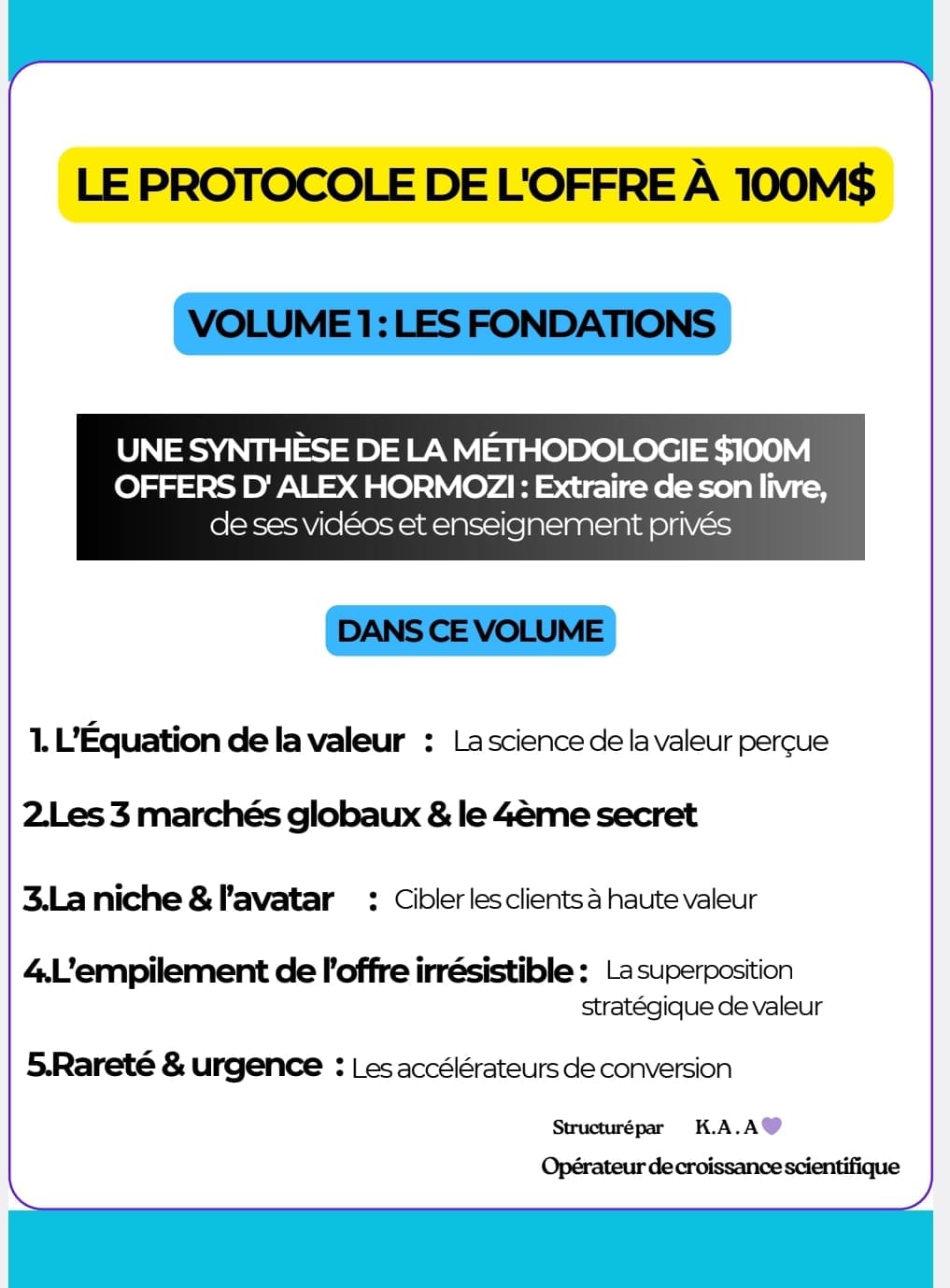 Avis juridique : Cette plateforme et ses protocoles d'application sont des produits indépendants. Ils ne sont pas affiliés, approuvés ou sponsorisés par Alex Hormozi ou Acquisition.com. Toutes les marques, logos et concepts originaux restent la propriété exclusive de leurs détenteurs respectifs. Ces outils sont conçus comme des cadres compagnons à utiliser parallèlement aux livres officiels disponibles sur Amazon