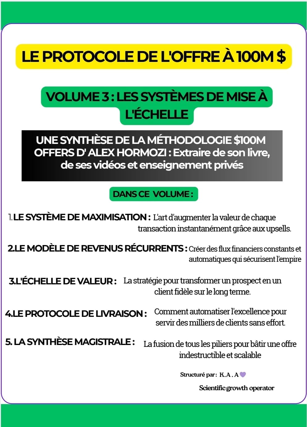Ce troisième volet complète votre arsenal technique en se focalisant sur les mécanismes de croissance massive. En parfaite synergie avec les principes d'exécution de $100M Offers, nous structurons ici l'organisation opérationnelle nécessaire pour absorber une montée en charge sans précédent. Le Volume 3 transforme vos stratégies d'expansion en un flux de travail automatisé, garantissant que votre structure reste aussi solide que votre offre