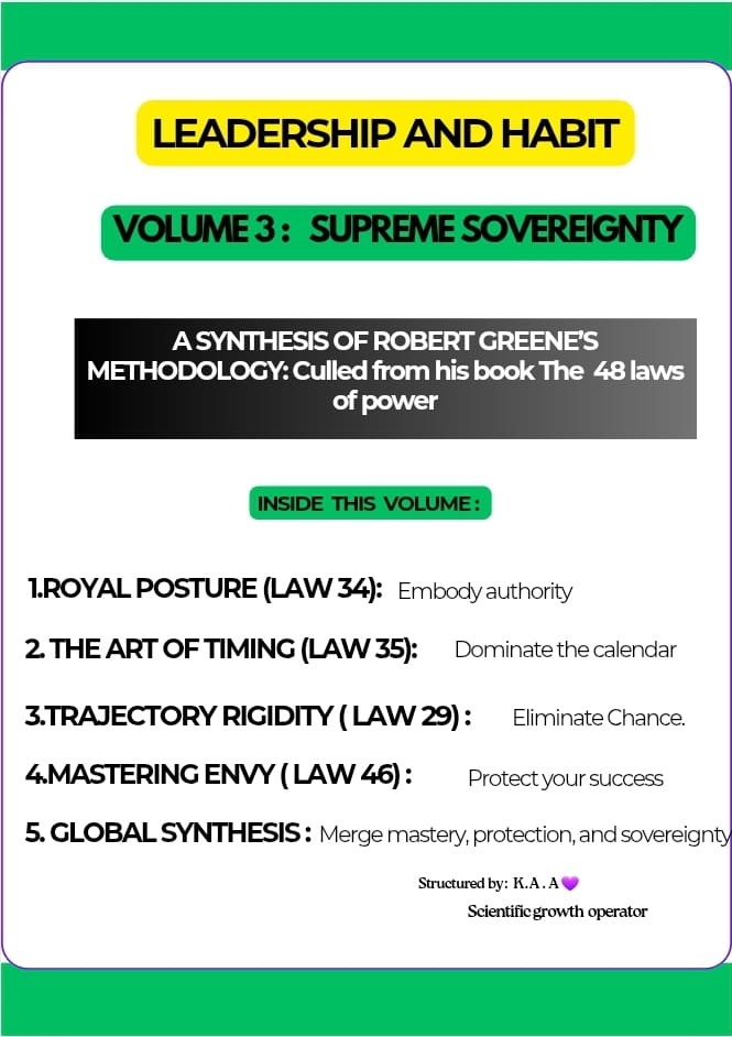 This protocol is the essential technical framework for deploying the final stage of Robert Greene’s methodology with surgical rigor. Moving beyond mere protection, this volume is the direct continuity of Volume 2, dedicated to locking in the fundamental pillars of your royal posture and the undisputed leadership mindset. More than just a support tool, it is a structured workflow (checklists, engineering sheets, execution stages) designed to eliminate chance. Stop being a subject: become the supreme architect of your destiny.