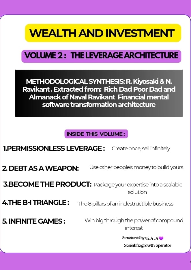 Here, we extract the most powerful wealth-building levers from the Kiyosaki and Naval systems to inject them into your financial structure. Volume 2 serves as a strategic alignment guide to streamline your leverage process and cement your transition toward infinite scalability. Stop trading time: leverage systems, capital, and code.